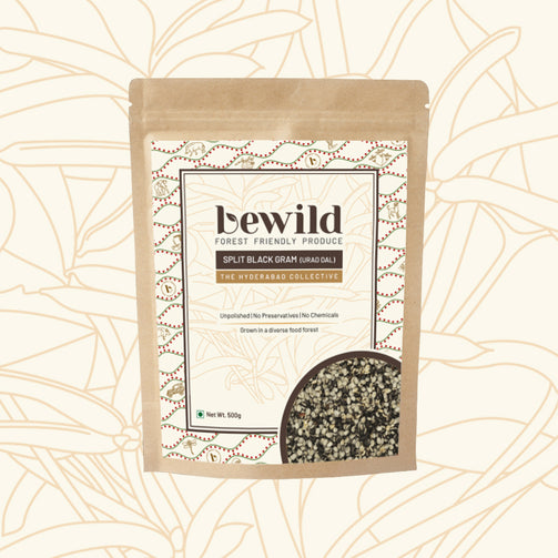 At Bewild, we believe true nourishment begins with how food is cultivated. Our Split Black Gram is grown by the Hyderabad Collective at Beforest, in a diverse food forest where soil health and biodiversity come first. Instead of synthetic fertilizers, we rely on natural inputs like Jivamrit and Beejamrit, traditional formulations that nurture living soils and sustain crops naturally.