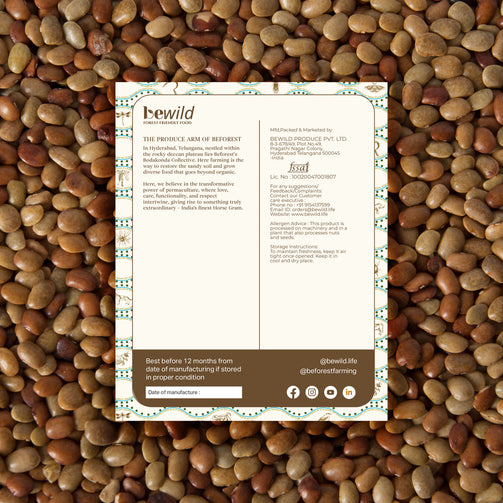 Esteemed in Indian cooking for its earthy flavour and health benefits, and celebrated in Ayurveda, horse gram is a nutrient-rich legume ,naturally grown in The Hyderabad Collective.